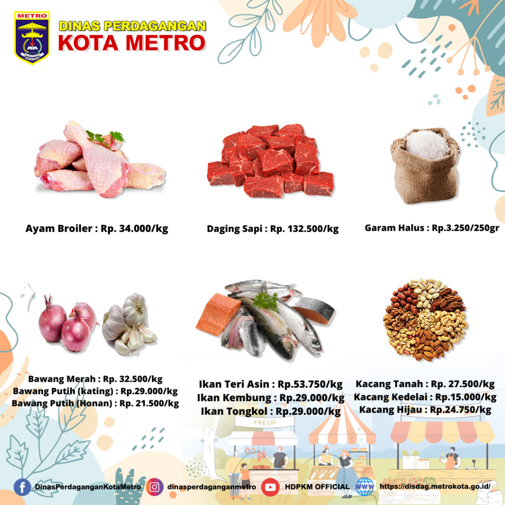 Update harga kebutuhan barang pokok di pasar Kota Metro pada hari Selasa (02/08/2022).